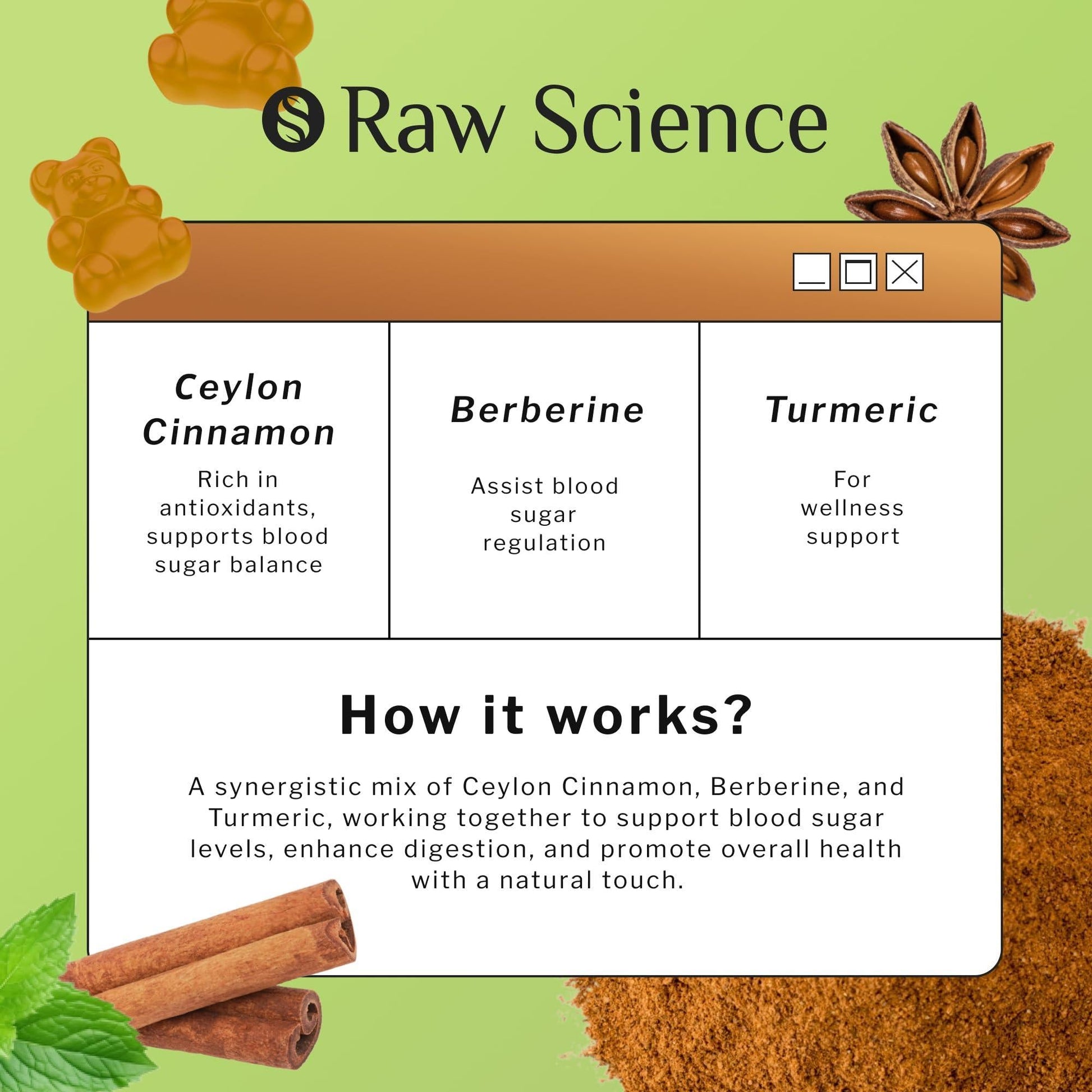 Cinnamon Gummies Blood Support Ceylon Cinnamon Bark 2000MG Blend 60 Gummies